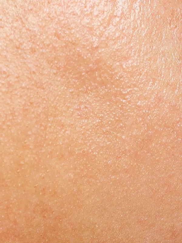 Combination skin is characterised by oily zones often alternating with dryer ones. It appears shiny and thickened, especially in the ‘T-zone’. This skin type also tends to feature dilated pores.